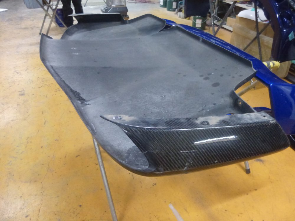 2020年04月01日 20:17 GDB用のディフューザー。割れてしまったので修理です。カーボンなので完璧には戻りませんが、走って脱落しないようにつなげます。編み込んだ繊維の部分は戻りませんからね。。。
