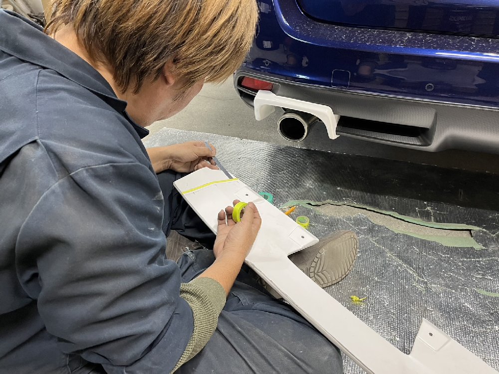 2022年12月13日 20:25 本日の作業です。VMレヴォーグのリア周りのワンオフ加工です。4本出しマフラーが入る様にアーチを加工。それに合わせてマッドガードとディフューザーも加工します。完成が楽しみです♪