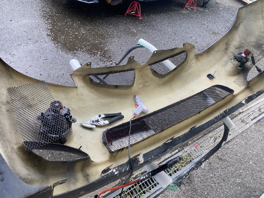 2021年06月16日 19:35 本日の作業。バンパーのネット交換です。車両はコルト。石はねや拾い物(笑)でネットがかわいそうな状況になっているので、新品交換です。今度はしっかり接着してあるので、取れませんよ♪