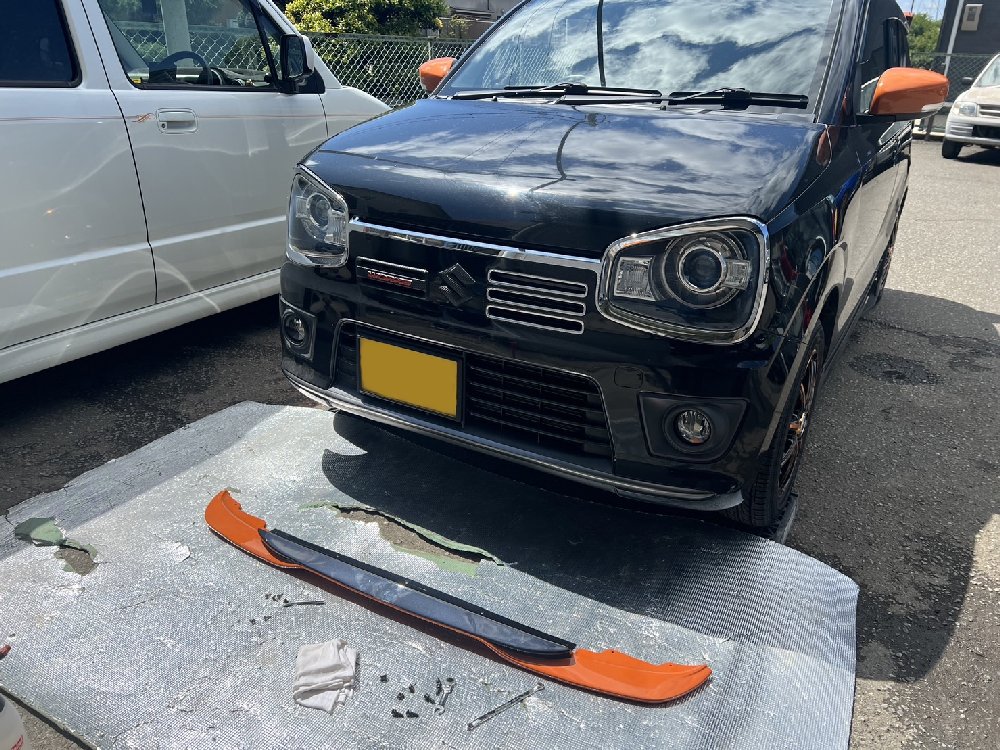 2023年04月16日 20:14 本日はSAかしわ沼南さんにてイベント中ですが、工場でも作業はあります。補修、塗装でお預かりのアルトのリップが完成したので取り付けです。オーナーさんにもご満足頂けました♪