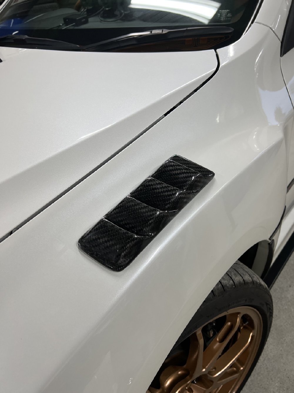 DRYカーボンのフェンダーダクトとカーボンキックガードの取付けです。