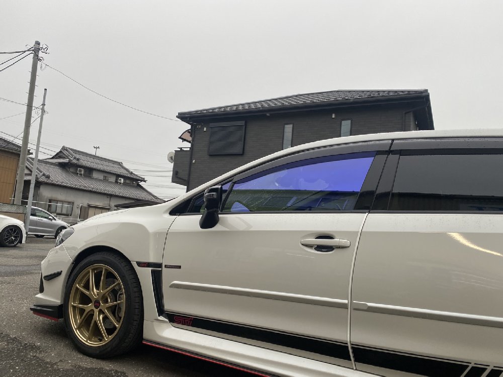 2021年05月18日 20:19 本日の作業。フィルムの施工。今はやりのレインボーなヤツですね♪運転席と助手席のみの施工となります。もちろん透過率70%越えの車検対応です。※車種によっては70%を超えない場合がございます。なかなかカッコイイですね♪
