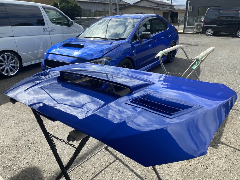 WRX/STIのボンネット交換です。