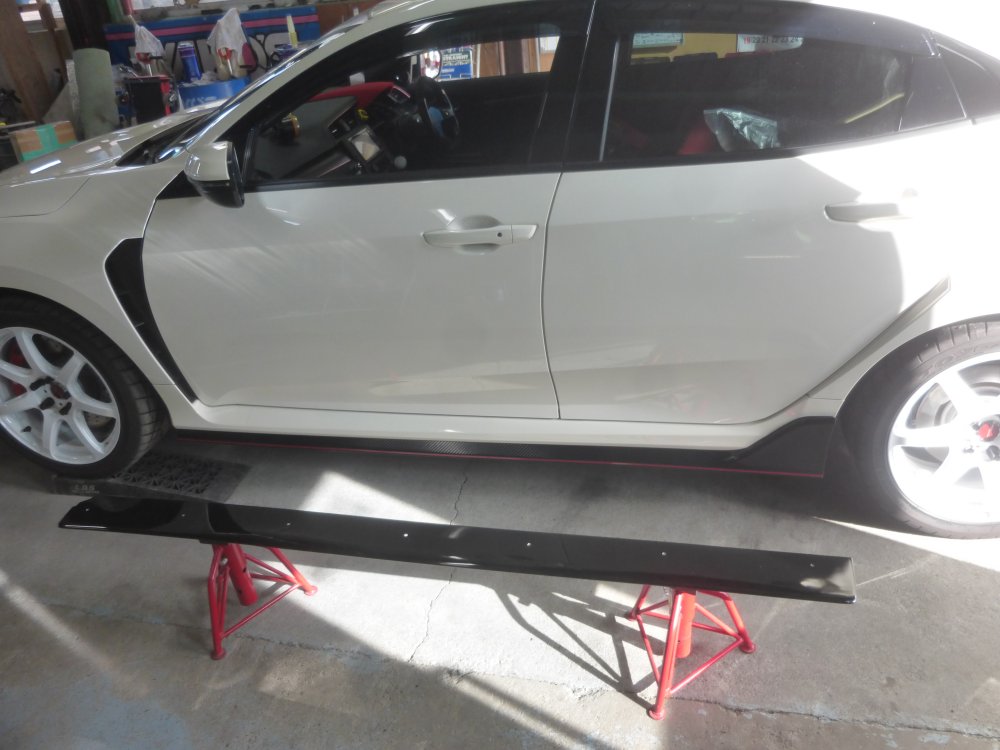 2020年04月23日 19:49 グランドエフェクトスポイラーを流用します。車両はFK8シビック。VAB用のものを使うのですが、さらに延長加工。ホイールベースが長いですね。タイヤギリギリまで外に出しておけば石はねも防げます!!