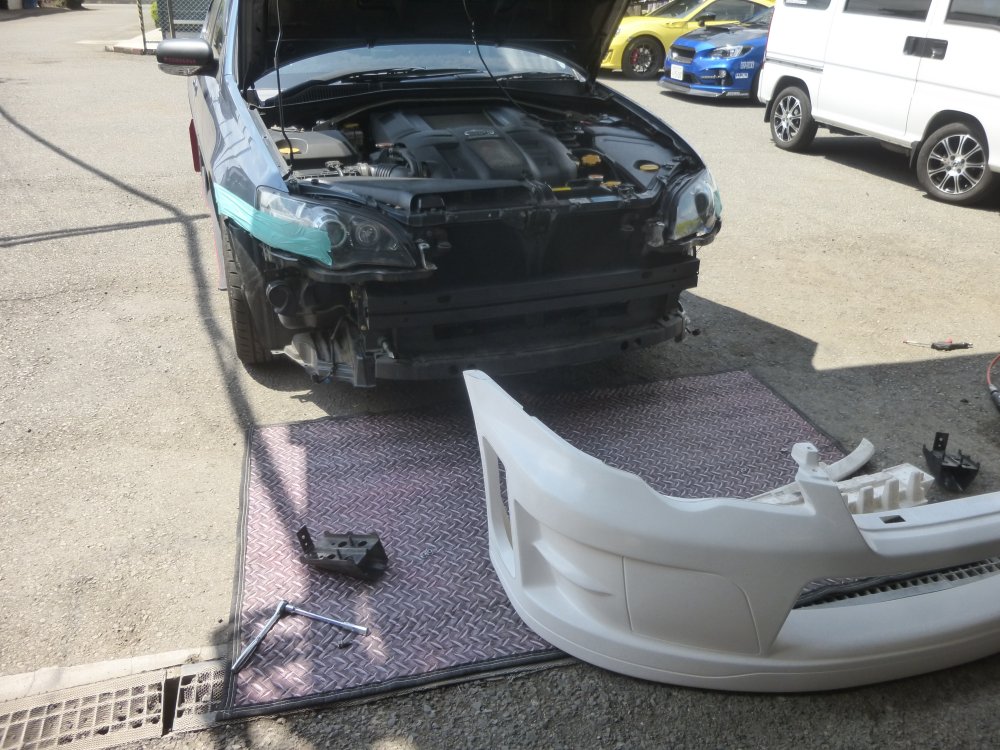 2020年04月24日 19:04 バンパーをご注文いただいているBLレガシィのお客様。製品は完成したのですが、けん引フックをつけたいとの事で、塗装前に位置出しと穴あけです。塗装後の穴あけはリスク高いですからね!