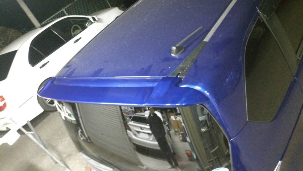 2021年03月25日 20:16 フリードのお客さんからの依頼。純正ウイングを手に入れたので付けて欲しいとの事。台紙もないので現車合わせで穴位置を探ります。両面テープとボルトでしっかり固定。ややスポーティー感が出ました♪