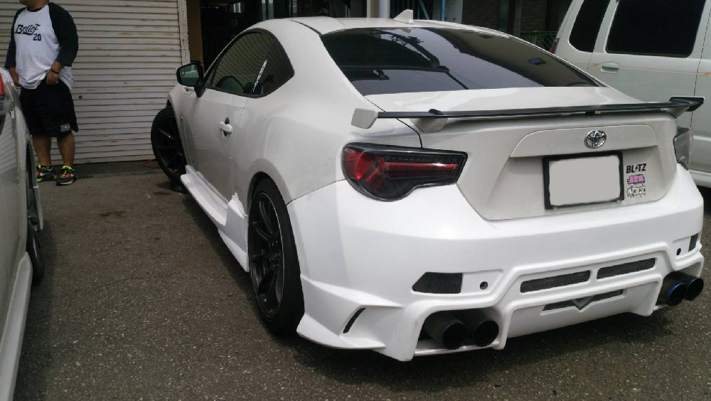 2021年06月26日 23:11 本日の作業。86に弊社エアロの取り付けです。フロントバンパー、サイドステップ、リアバンパーの3点です。とりあえず未塗装での納車です。お客さんの方で塗るようですね。