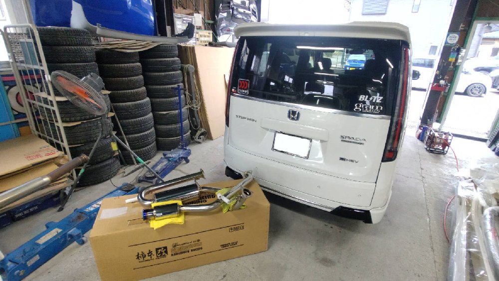 現行のステップワゴンのマフラー交換です。