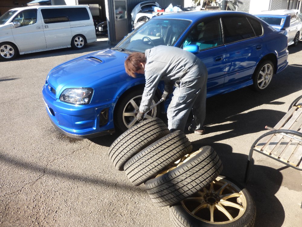 BEレガシィのオイル交換とスタッドレス交換です。