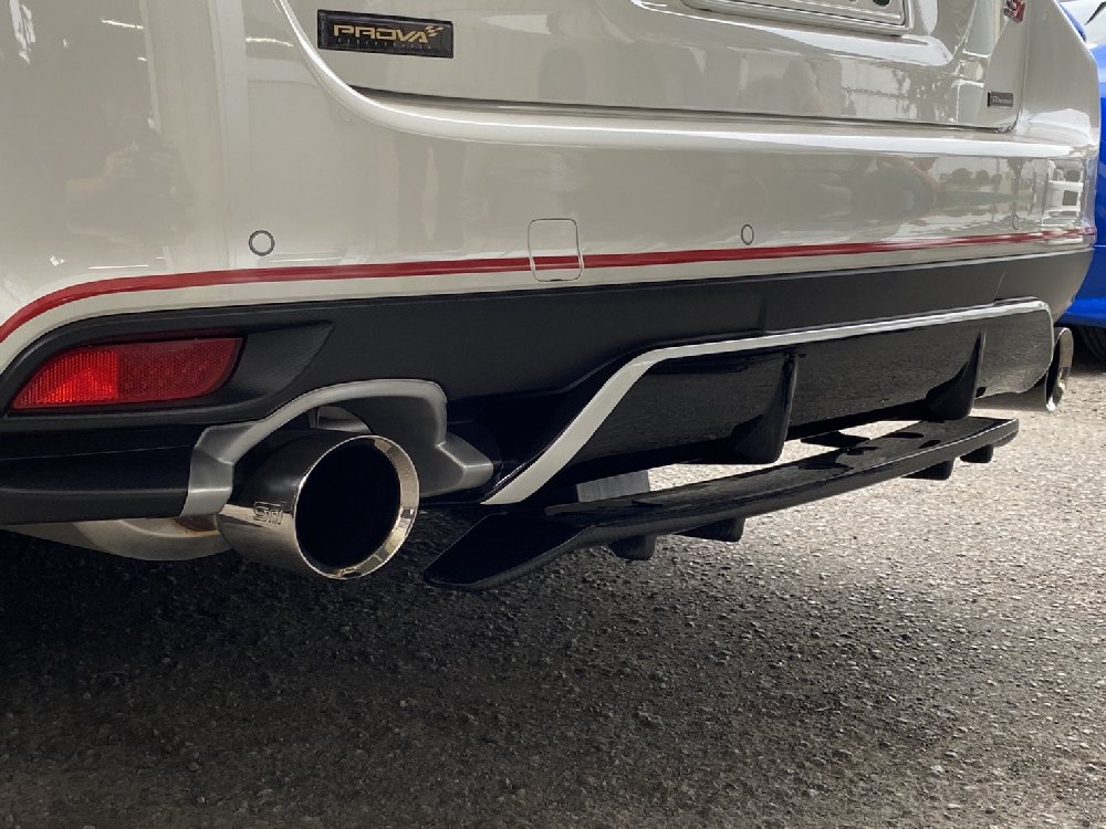 2021年08月29日 19:19 リアアンダーブレードの取り付けです。車両はVM型レヴォーグです。オプションのSTIのブレードを外し交換するだけで作業完了!!穴位置のズレがある場合は少しステー側を削って調整。DRYカーボンで質感アップです♪
