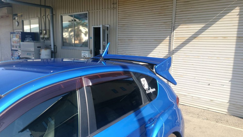 GRBインプレッサにエアロアンテナカバーを取り付けます。