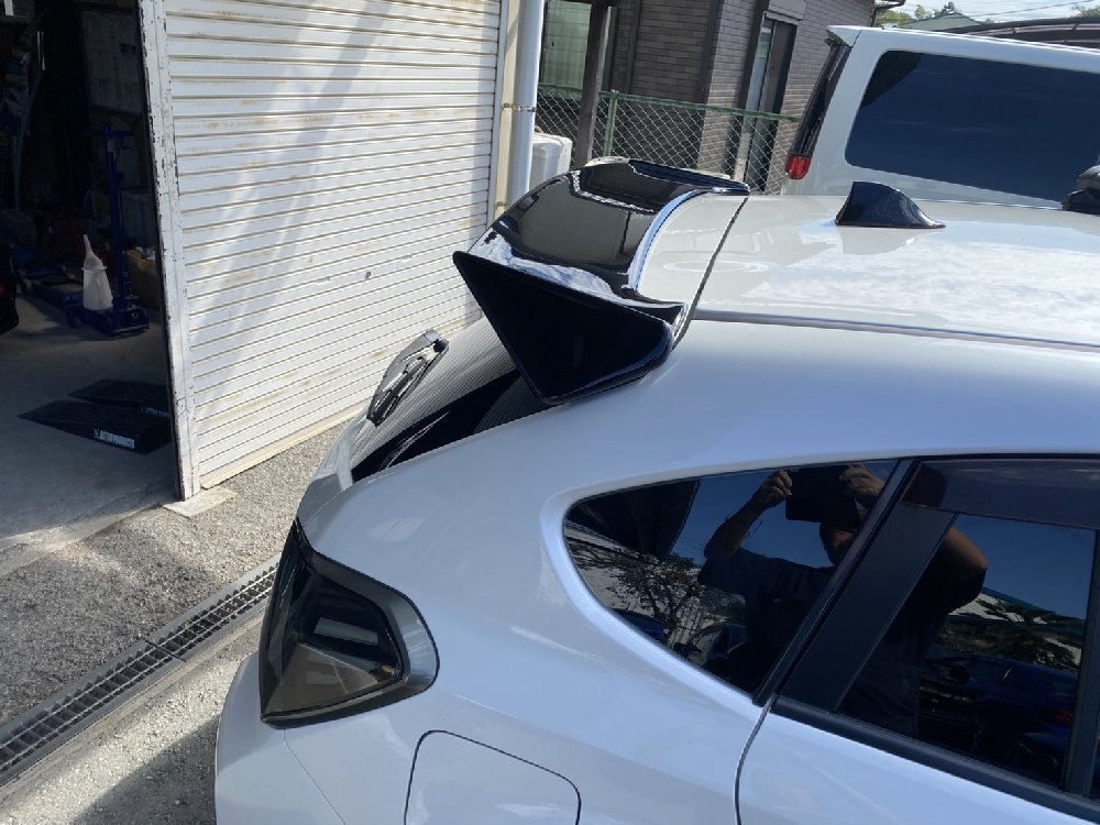 2021年10月08日 20:55 リアウイングの取付けです。車両はGP型インプレッサ。BPレガシィやVMレヴォーグのようにリアハッチ上部が外れないので、鉄板に穴開け・直接固定です。やっぱり羽が付くと良いですね♪