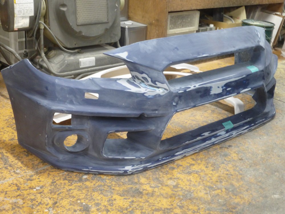 2020年04月09日 19:35 下廻りの付属品は修理完了したので・・・バンパー本体の補修に入ります。石はねなども激しいので、一緒に治してしまいます。細かく面修正をしたらサフェーサーを吹きましょう♪