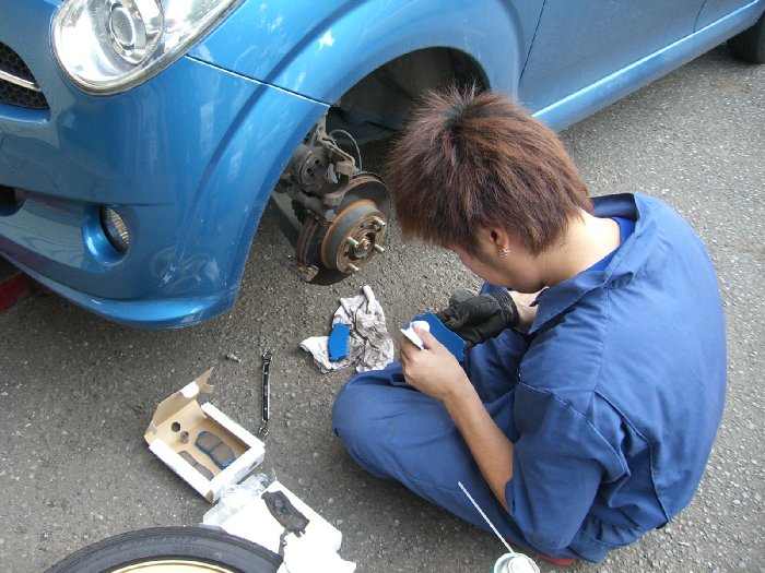 インプレッサネットさんのセカンドカーのR2のブレーキパット交換。