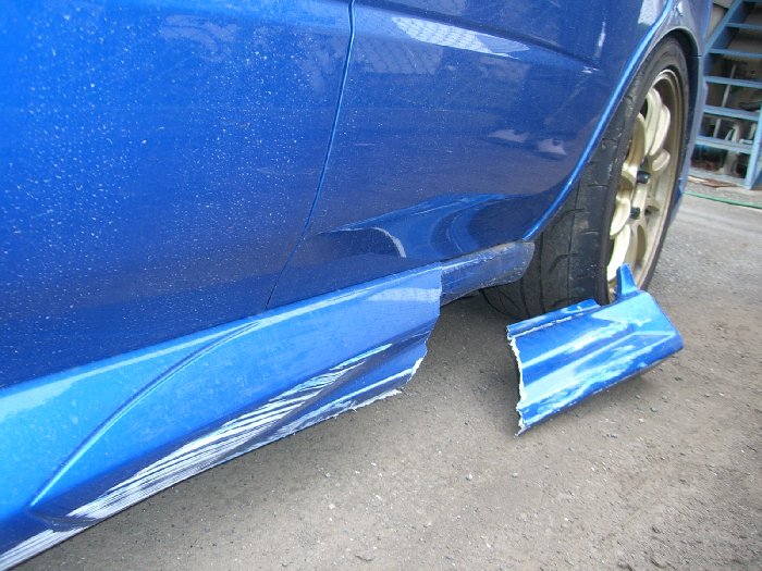 車を見ると、サイドステップが真っ二つ!