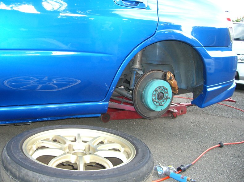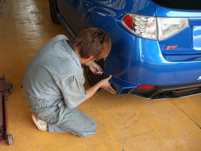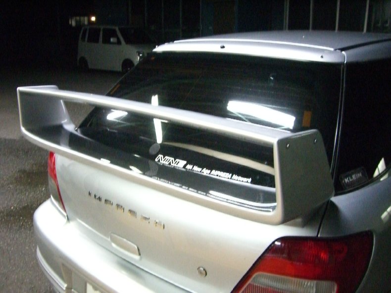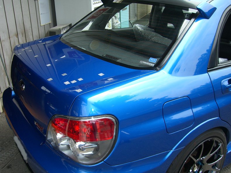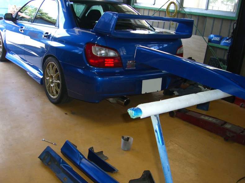 GDBインプ、A型のお客さんのリヤウウイング交換。