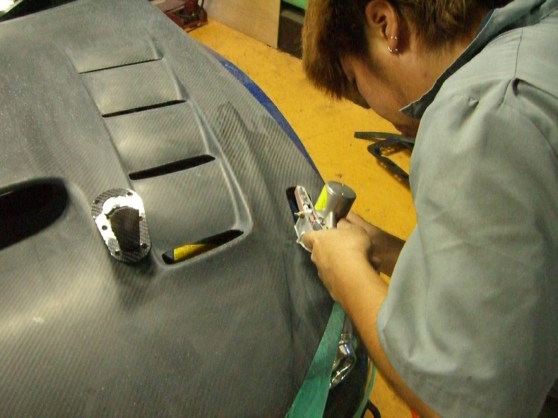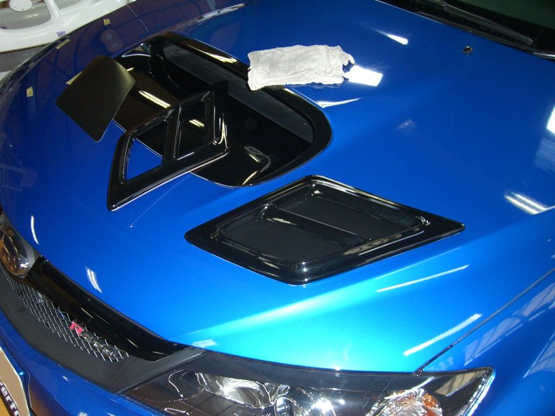 ボンネットにWRコンセプトのダミーダクトを装着します。