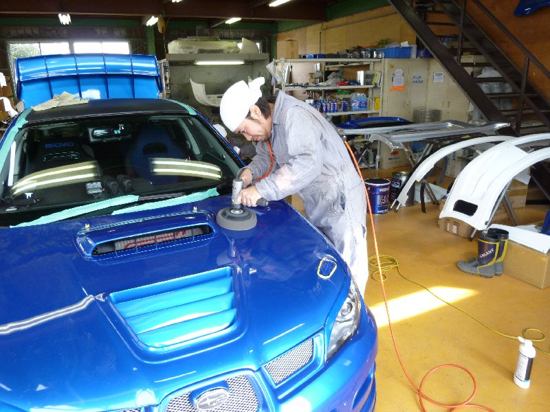 ボディがつるつるになったところでポリッシャーでコーティング剤を塗りこみしっかりと乾燥。