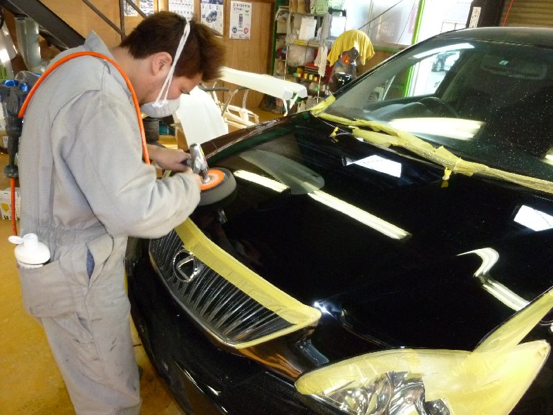 ウォータースポットがひどいので粗目のコンパウンドからガシガシかけていきます。(下地が出ないように!)