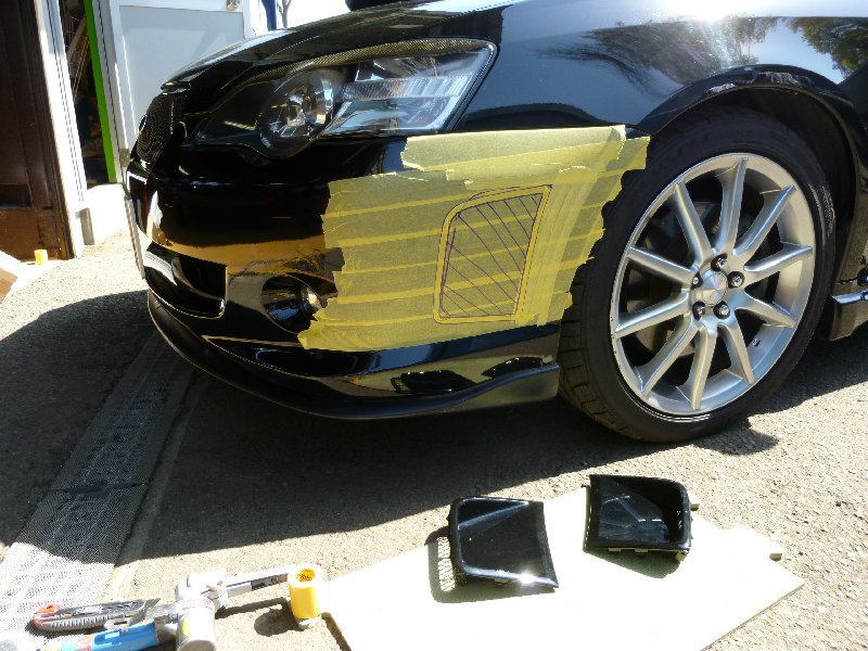GRB純正バンパーのサイドダクトをレガシィに流用加工です。
