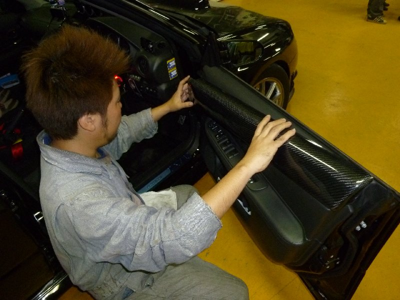カーボンドアトリムの取り付けです。