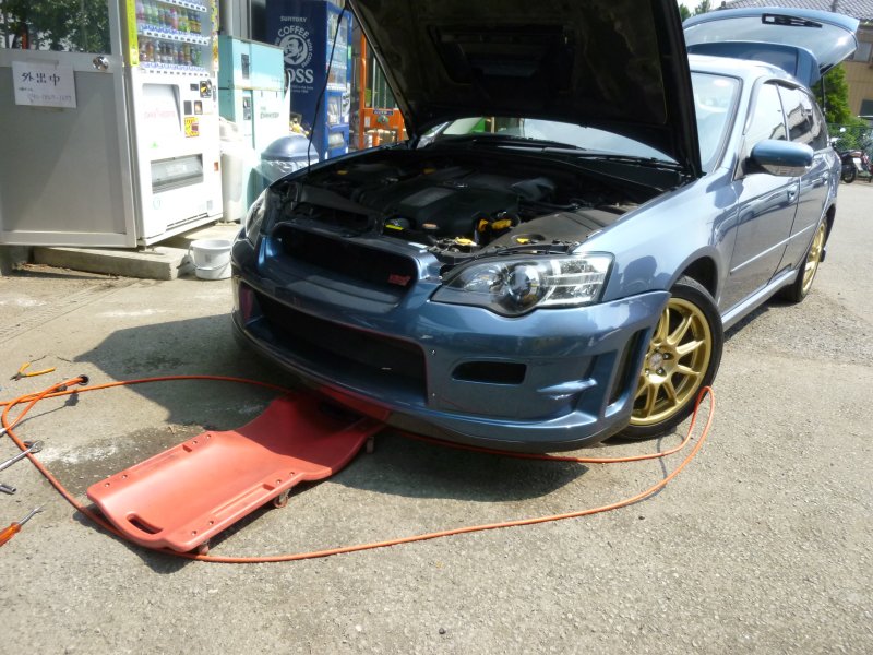 BPレガシィのお客さんのバンパー・ウイングが完成したので取り付けです。