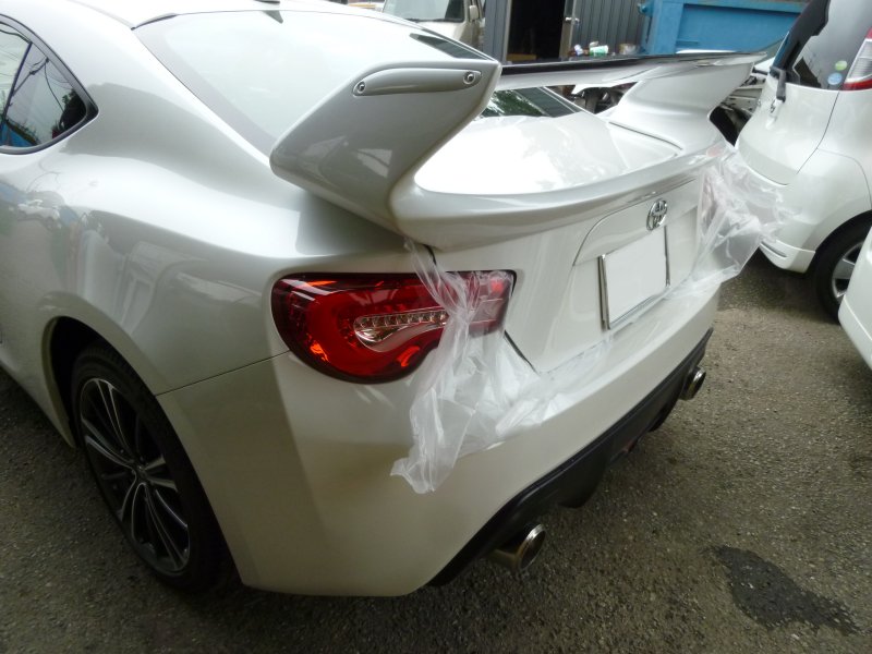 2013年09月06日 19:43 86のお客さんがご来店。塗装までのご注文のウイングが出来上がったので取り付けです。ウイングレス車両なのでトランクに穴あけからの作業です。新車ですから気をつけながら穴開けないとです。。。やはりウイングが着くとスポーツカーらしさが出ますね♪