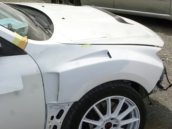 2013年09月10日 19:17 フェンダー加工でお預かりのGVB。造形が終わり、サフェーサーまで出来上がり♪塗装の準備・・・・・・ですが、パールホワイトで色の焼けや劣化があるので色合わせをします。3層重ねる3コートパールといわれるものなので色合わせもシビアになってきます。塗りあがりが楽しみです♪